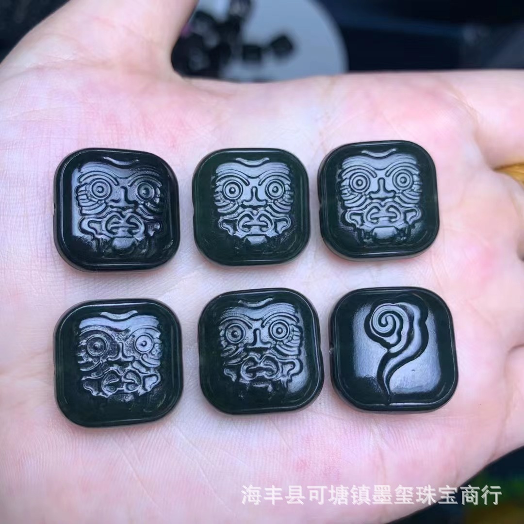 和田玉青海材料九尾狐ペンダント穴diyネックレスペンダントアクセサリー手串部品彫刻品卸売り工場