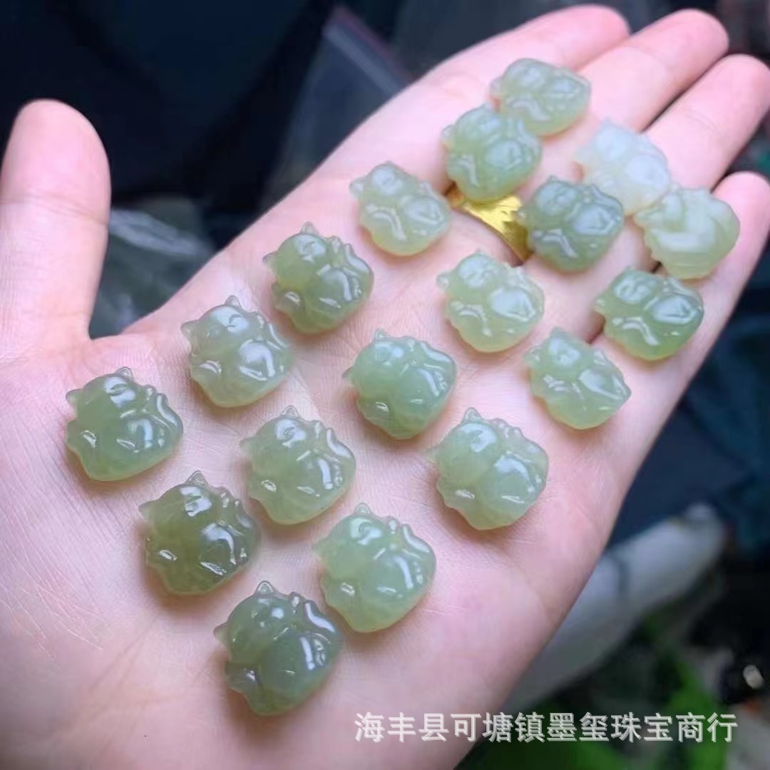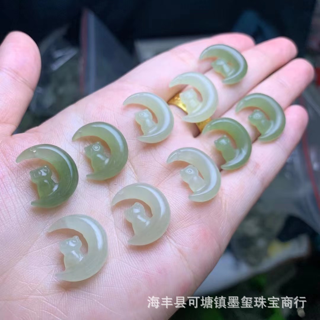 和田玉青海材料月猫ペンダント穴diyネックレスアクセサリー玉手串ブレスレットアクセサリー卸売り