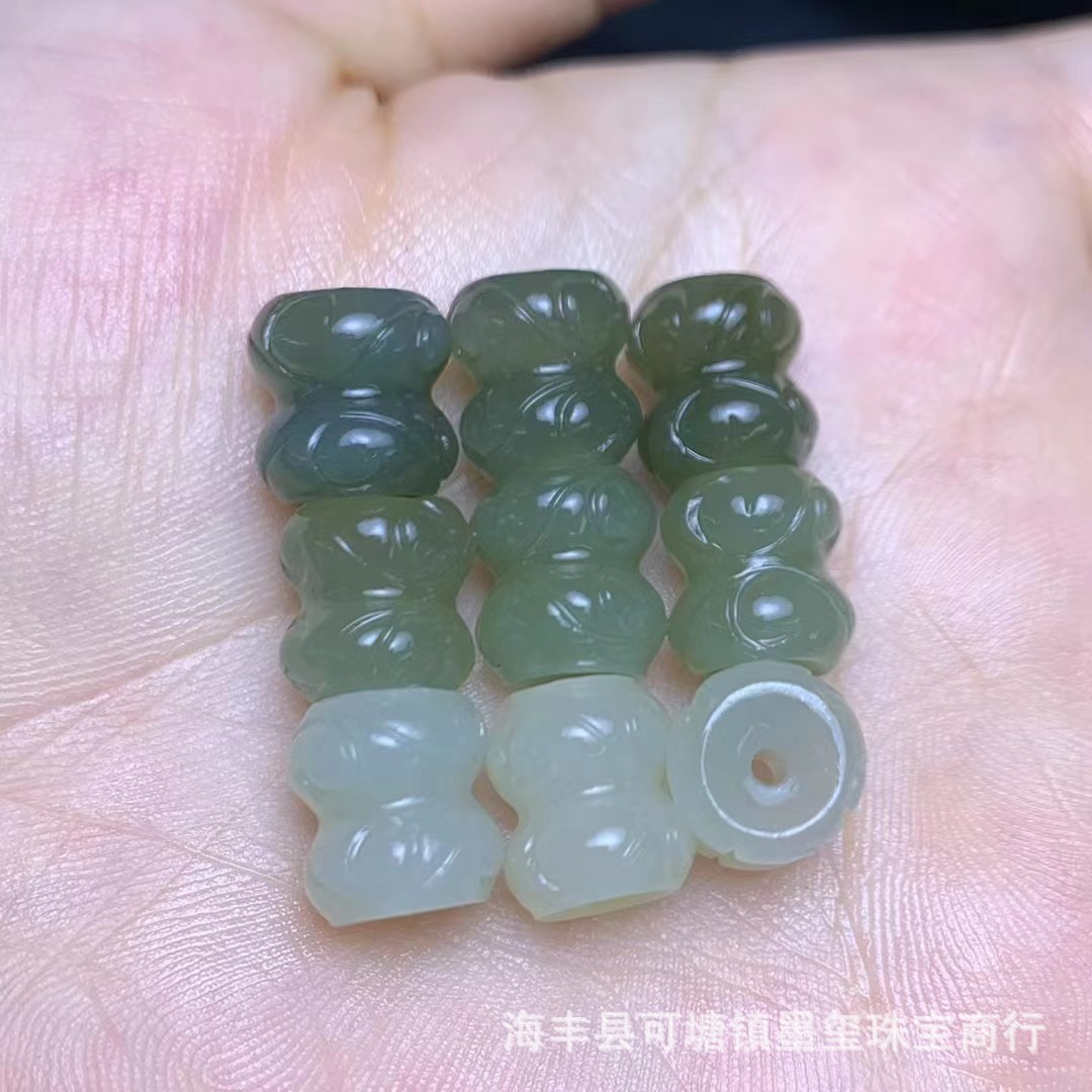 和田玉青海材料双回紋ホイールビーズ部品直通穴無雑diy手串ブレスレットアクセサリー卸売工場