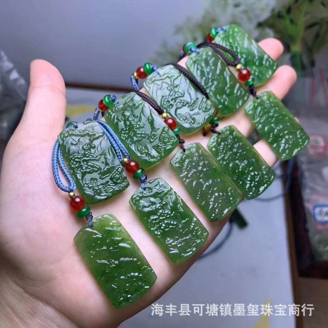 和田碧玉山水ブランドペンダント微黒点水頭足diy仏珠ペンダント玉ネックレス長鎖卸売り工場