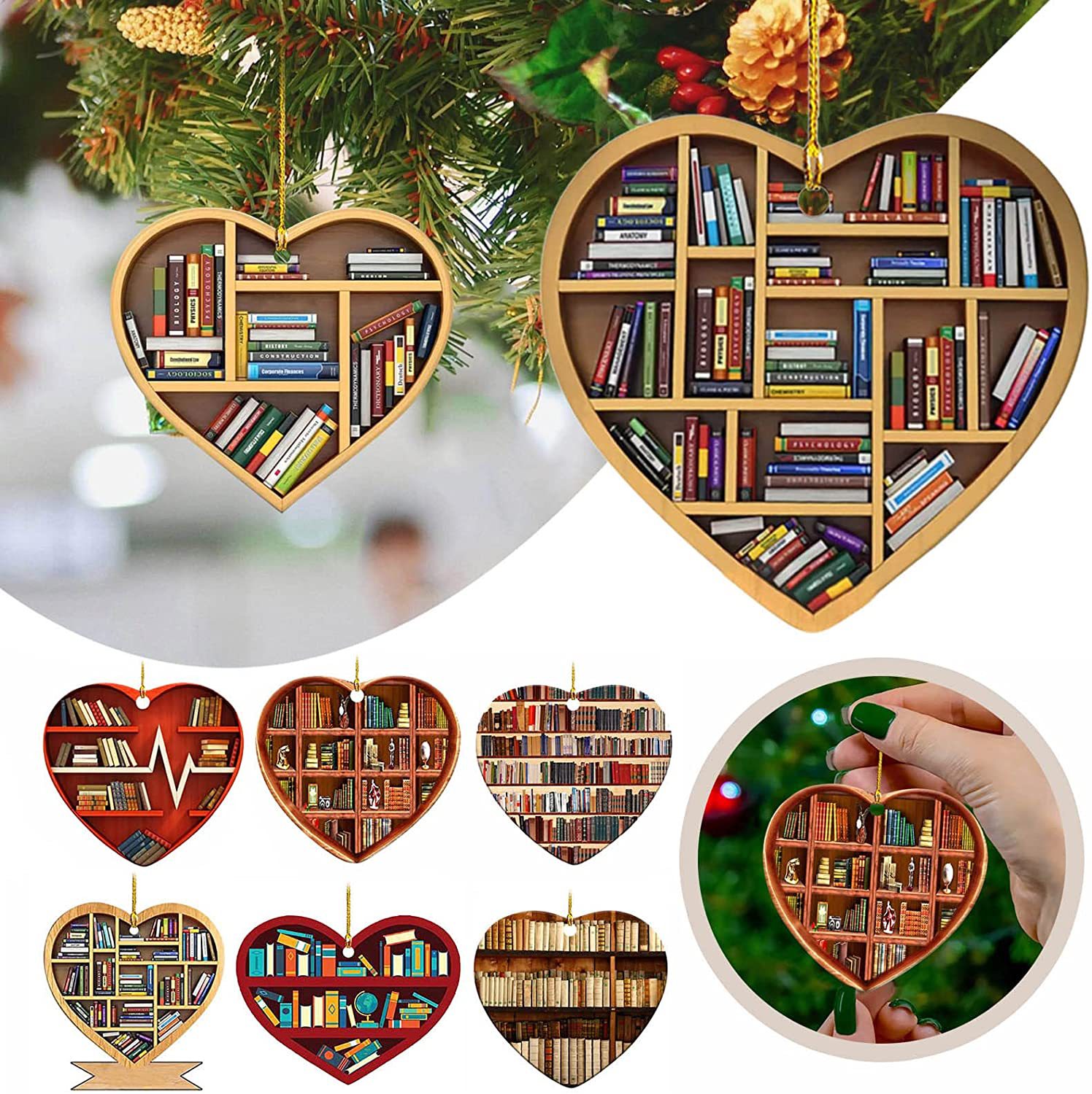 23新品クリスマス装飾品書籍愛好家ハート型図書館員装飾品自動車ペンダントホーム装飾