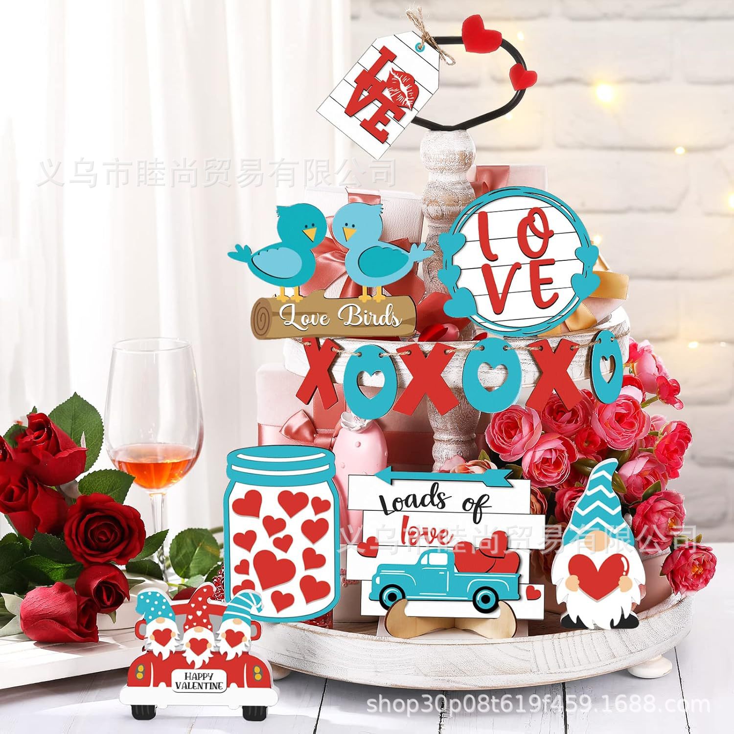 バレンタインデーの層のトレーの木製の装飾バレンタインデーの愛のマークの装飾のアイデアのデスクトップの置物
