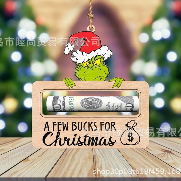 クリスマスのコインホルダーの装飾品、Merry Grinchmasの装飾品、クリスマスのお金のプレゼント