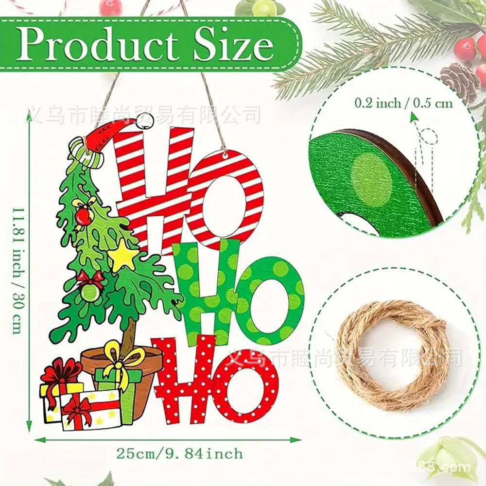 クロスボーダー新型クリスマス緑毛怪木芸壁掛けHOHOグリーン奇歓迎木製表札壁飾り