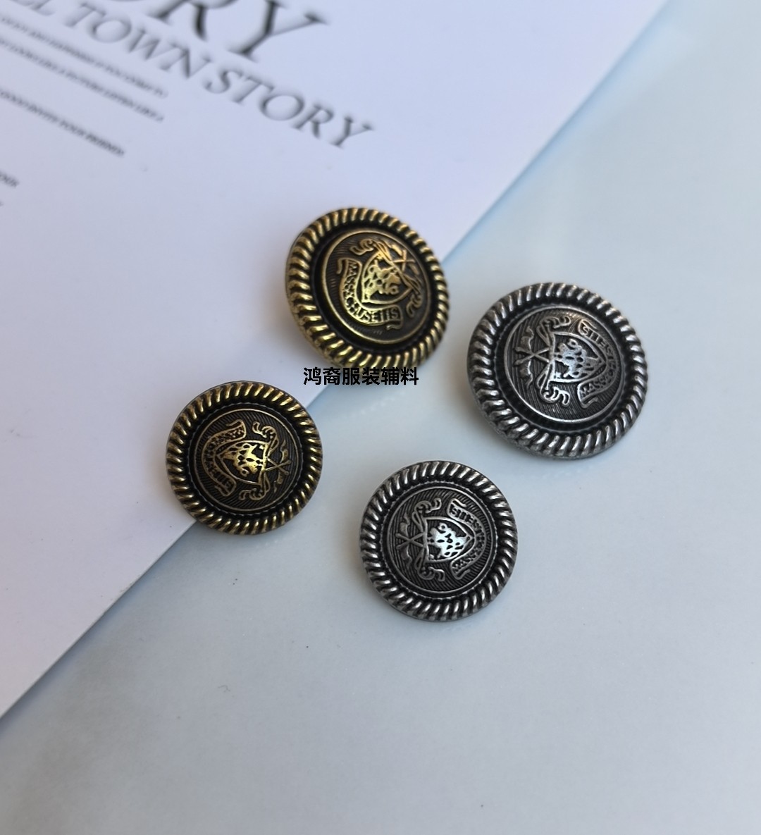 クラシックなレトロなシールドメタルボタンスーツニットウールコートボタンシンプルで多用途な装飾手縫いボタン