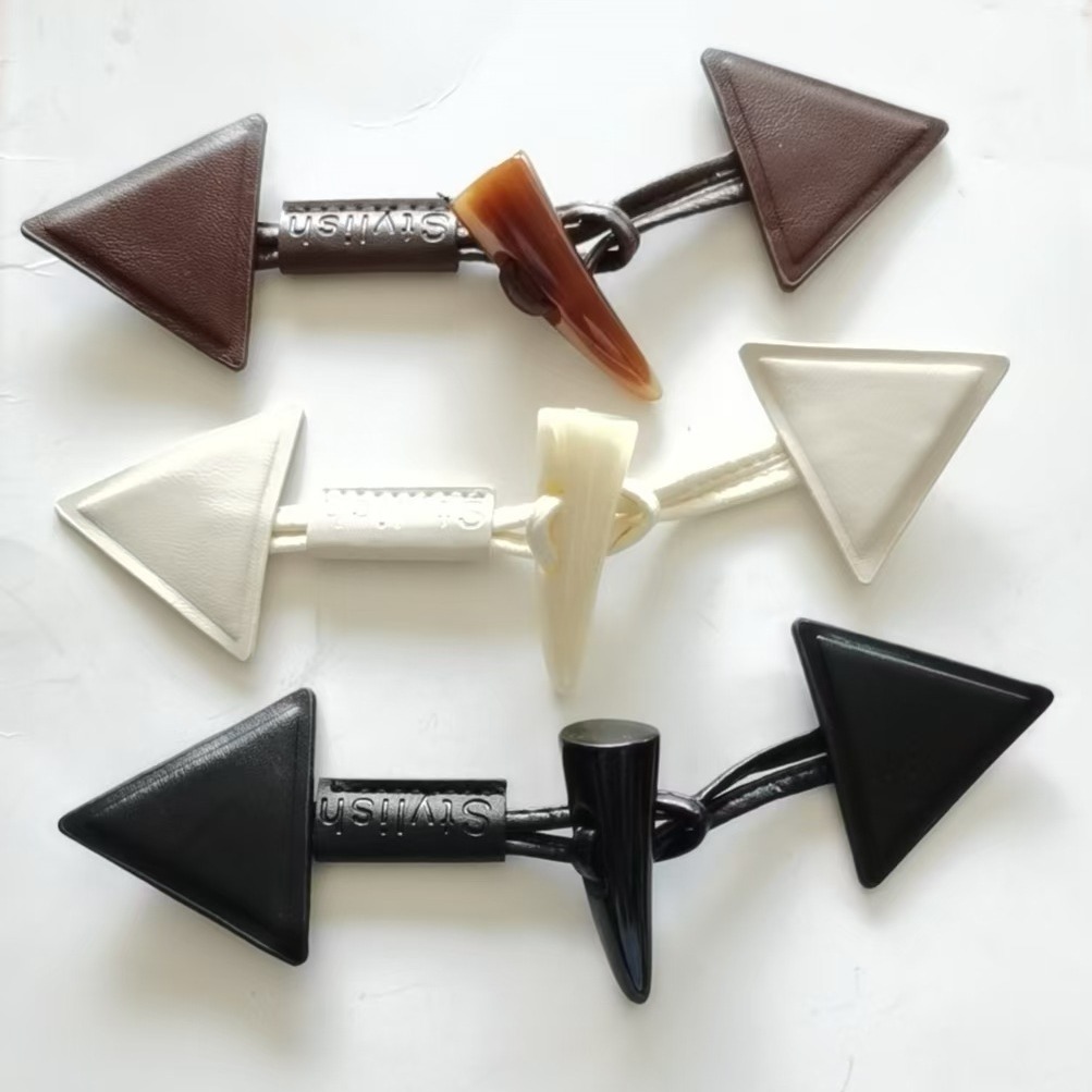 樹脂の牛の角の皮はボタンの三角の皮革を掛けてセーターのコートの風衣のコートを掛けます。