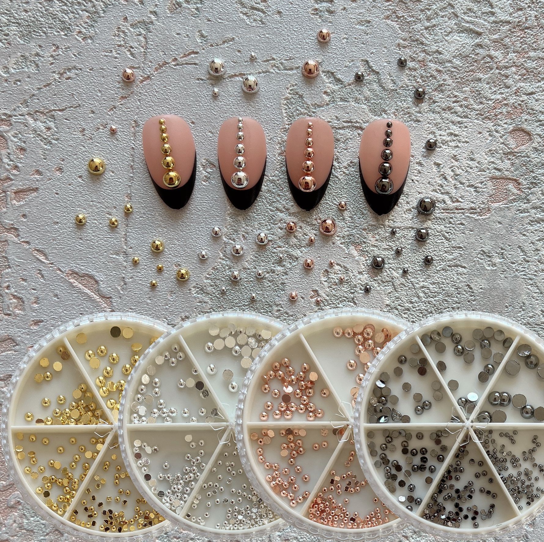 ネイルアート合金中実半球リベット4色6サイズ円盤入りネイルアート金属製の釘
