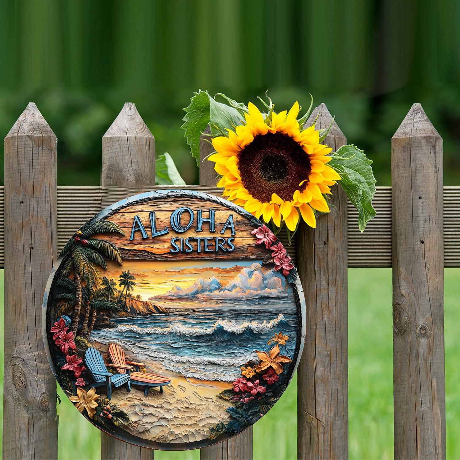 クロスボーダー新しいラウンドサインビーチサンセット装飾ウェルカムドアサイン木製ホリデーギフト中庭屋外装飾