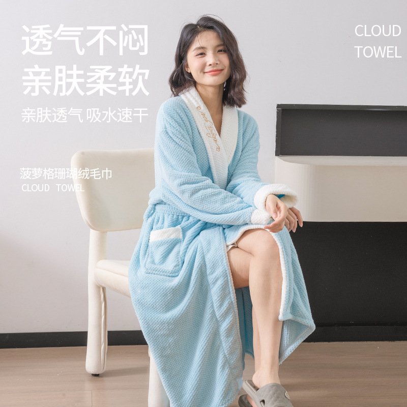 2023年の新型冬パイナップルの桃の心のバスローブは吸水速乾を着て厚くすることができます。