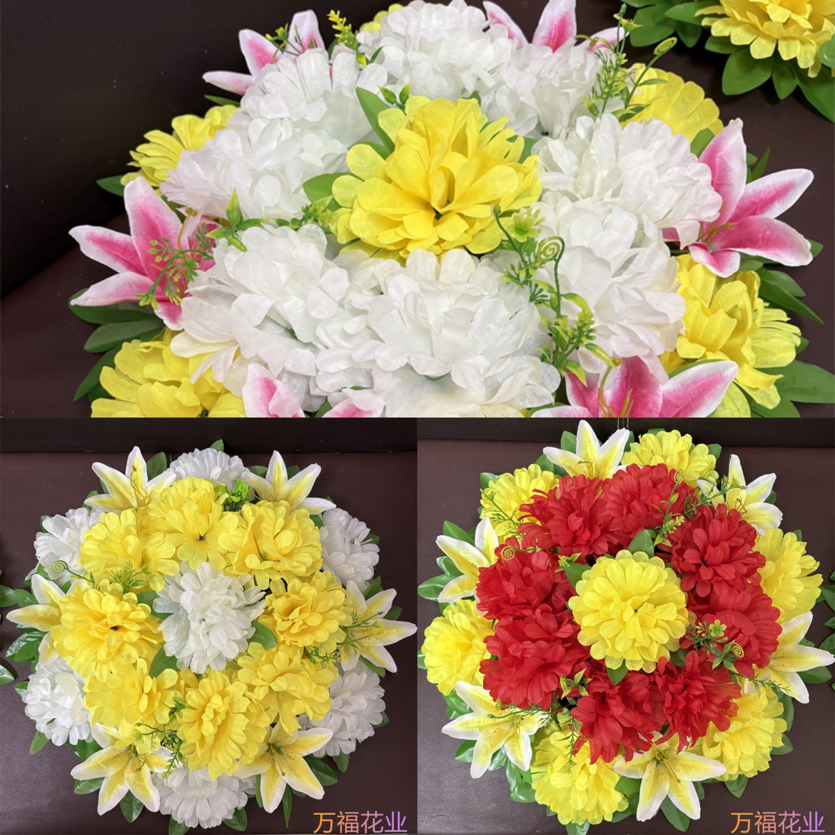 ユリの花輪、清明の花盆、墓祭りの花輪、墓地の花、模擬菊とユリ