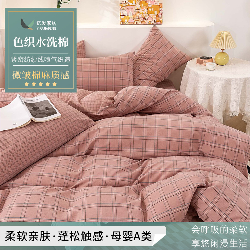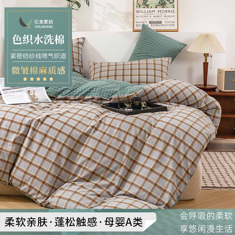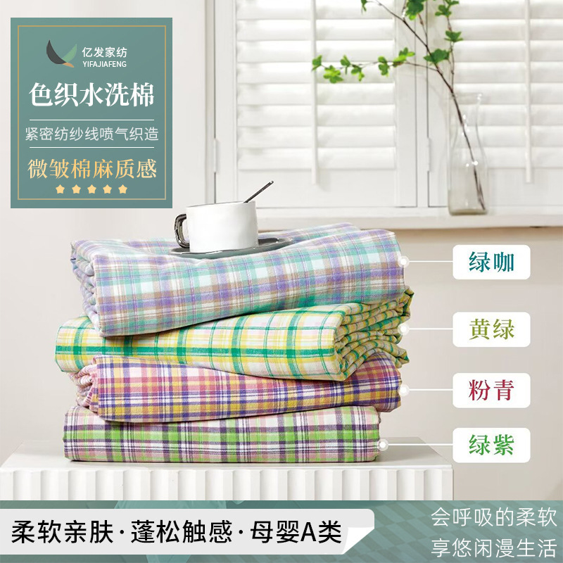 2024春夏新作精練密紡優品水洗い綿色織格子生地布寝具生地