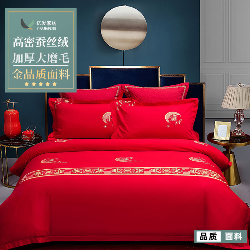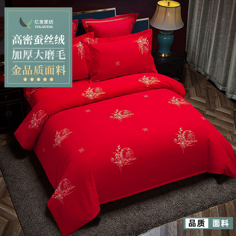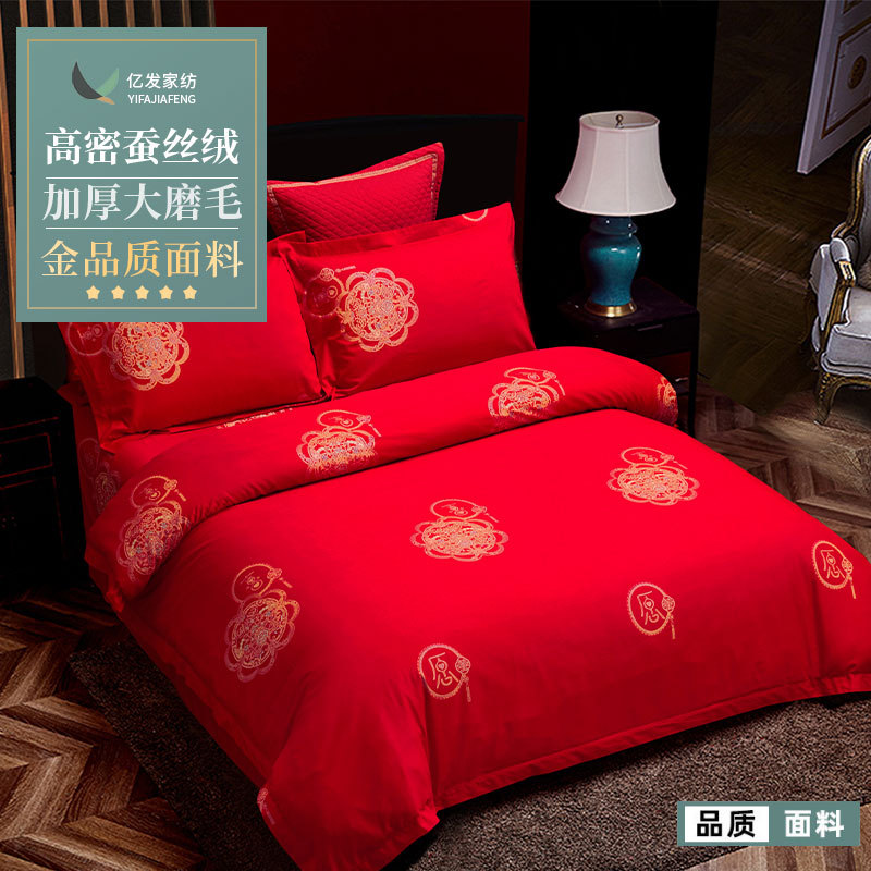 秋冬の新商品の高級結婚祝いの寝具の布地はとても赤いです。