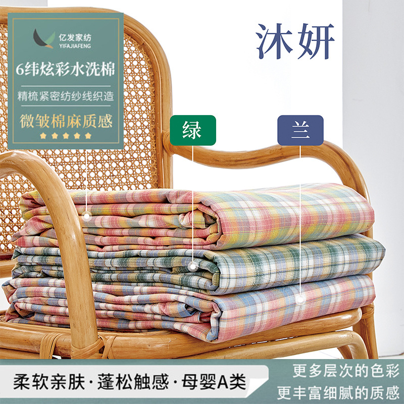2023春夏新品超ソフト色織水洗い綿布2.5メートル幅ストライプ格子シリーズシーツ布団カバー面