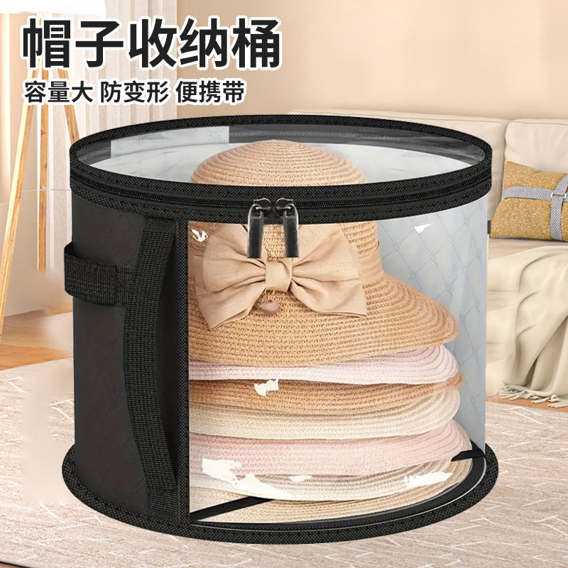 クロスボーダー透明キャップ収納袋帽子引越し収納袋取っ手付き帽子収納バケツ折りたたみ収納バッグ