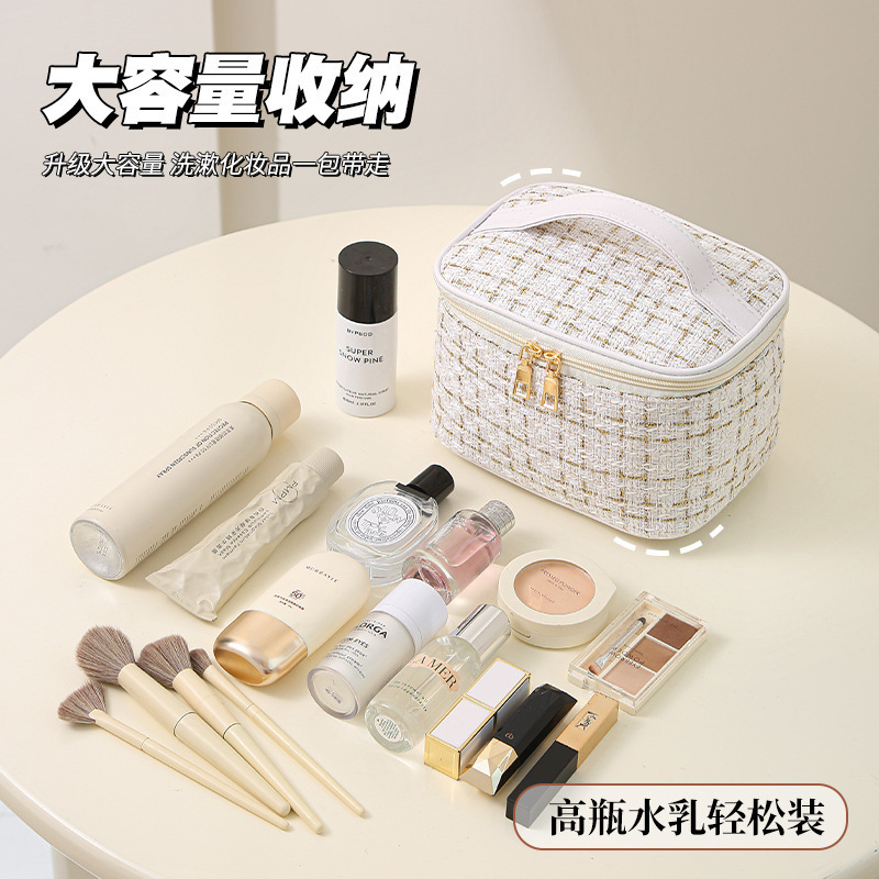 2024ポーチ小香风大容量高级感レトロポータブルハンディ化粧洗面バッグ収纳バッグレディース