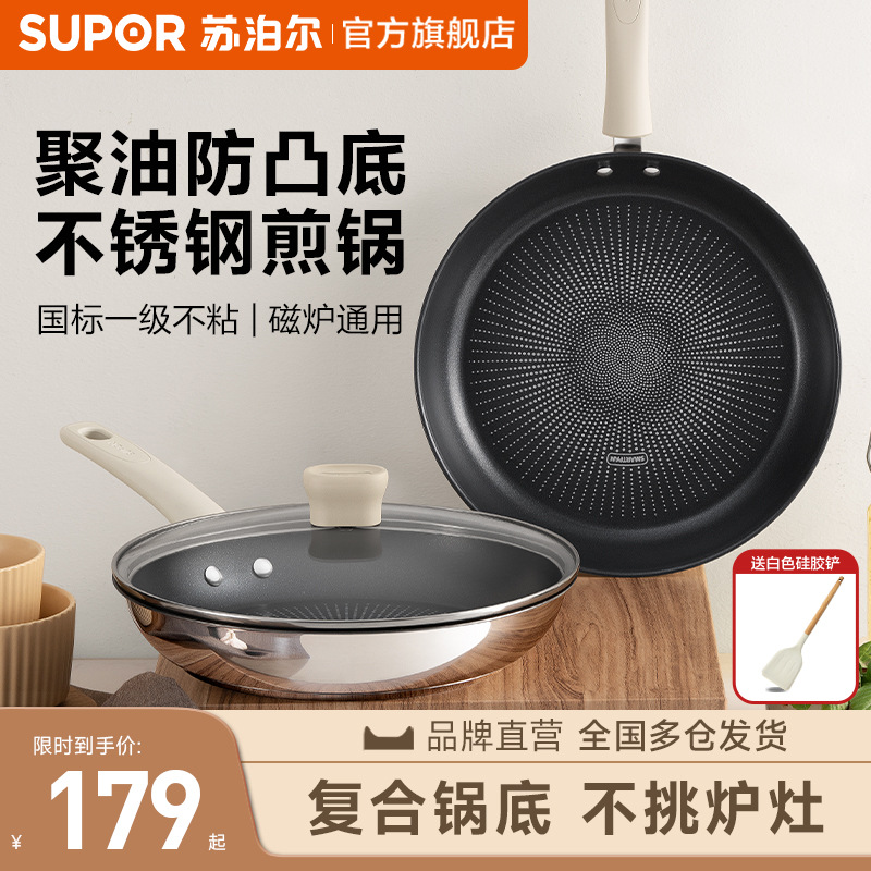 蘇泊爾フライパンは鍋にくっつかないフライパン家庭用パンケーキオムレツステーキフライパンの集油電磁炉ガス共通