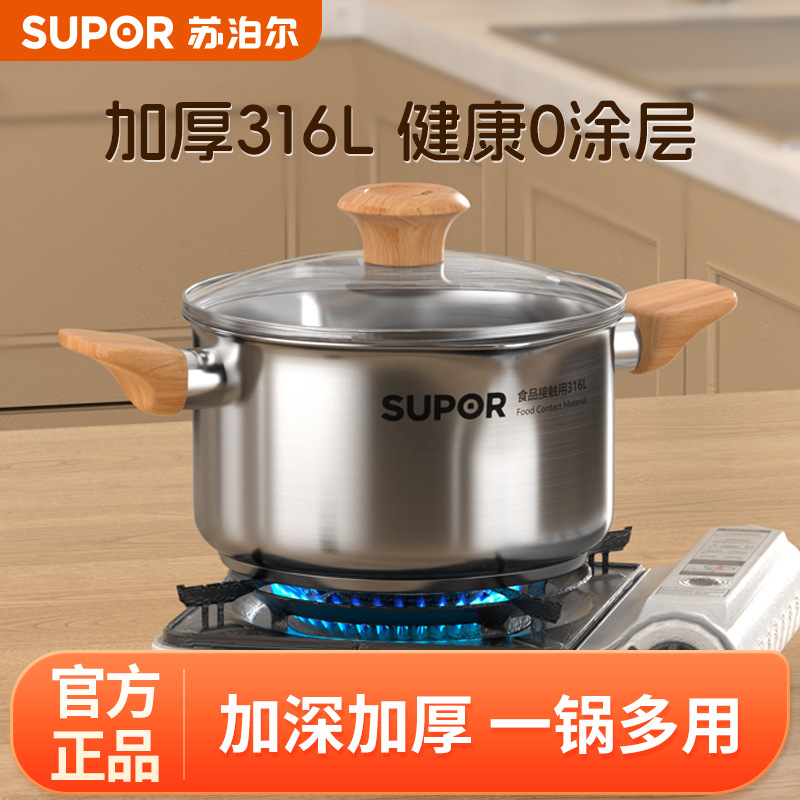 蘇泊爾スープ鍋304ステンレス鍋家庭用ガス煮鍋電磁炉ガス煮粥煮麺小鍋蒸煮
