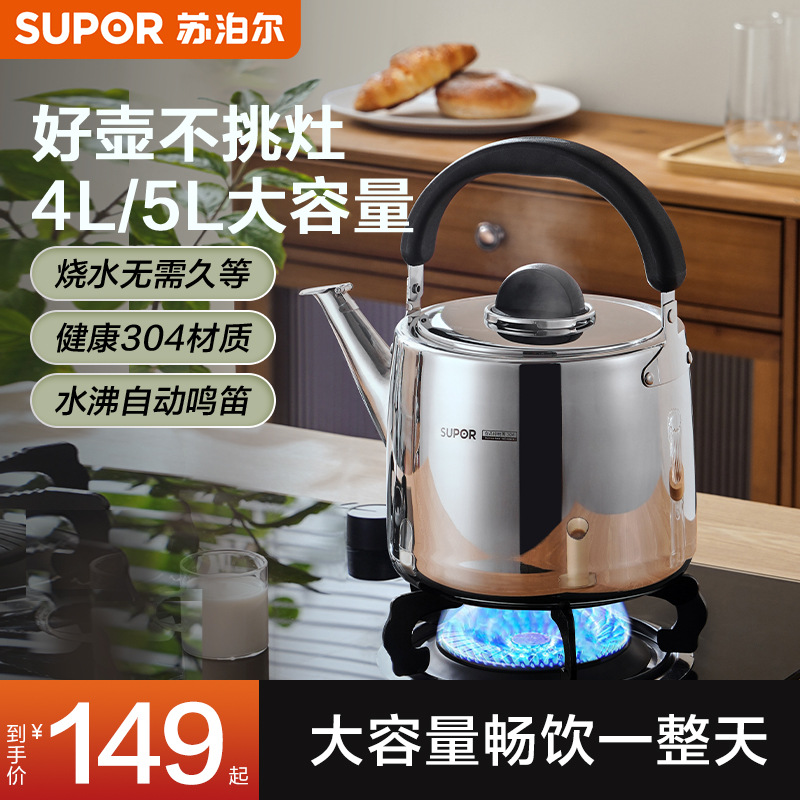 蘇泊爾ガス湯沸かし器304ステンレス大容量サイレンポット家庭用明火電磁炉共通