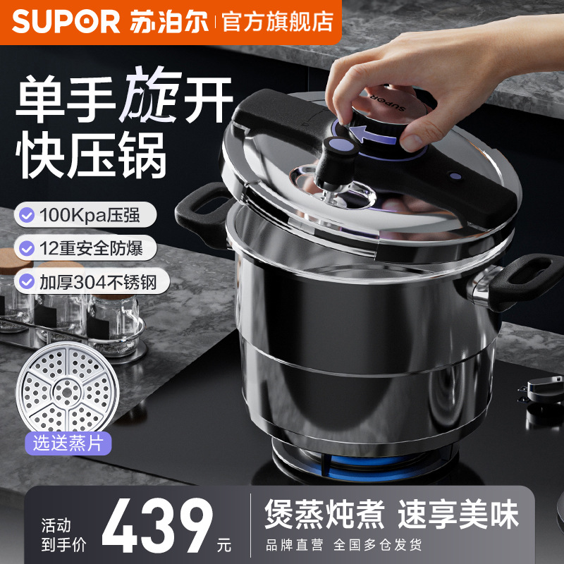 【カスタマーサービス-80】Supor 304ステンレス製圧力鍋 家庭用圧力鍋 ガス・電磁調理器対応
