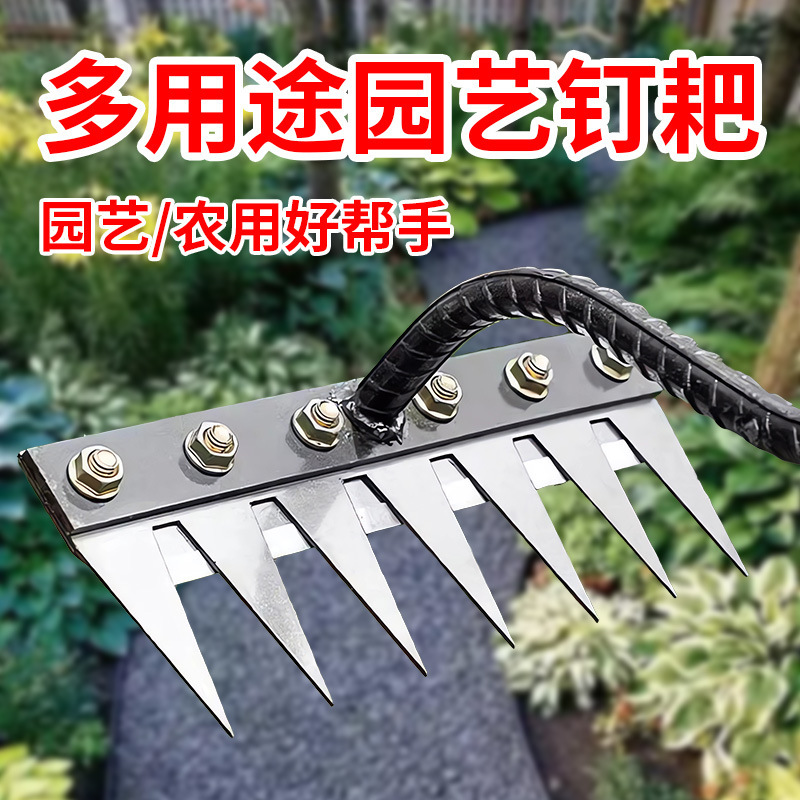 除草ツール、多機能除草ツール、7本爪の熊手、農業用厚みのあるマンガン鋼の取り外し可能な熊手