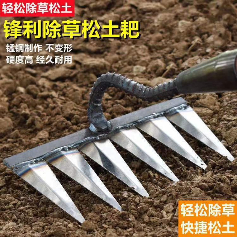 多機能農業用鉄熊手、ユニバーサル6歯除草熊手、屋外用新マンガン鋼開墾熊手溶接