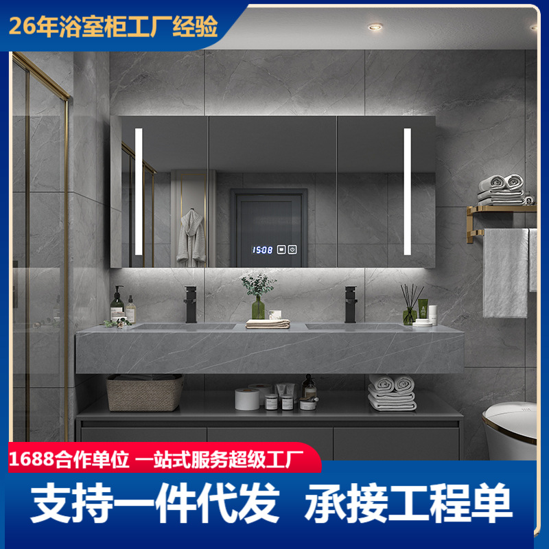 岩板浴室キャビネットモダンシンプル一体洗面器キャビネットセットトイレ洗面台洗面器スマートミラーキャビネット