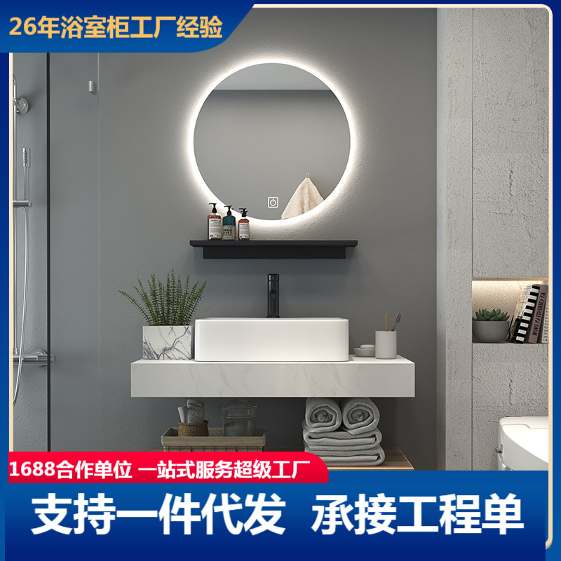 岩板浴室キャビネットセットモダンシンプルトイレ手洗い洗面台洗面台一体ミラーキャビネット浴室セット
