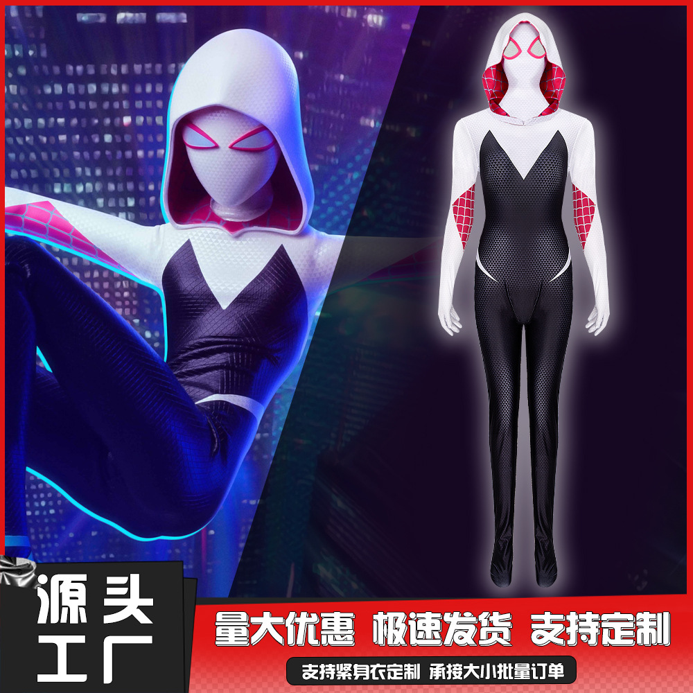グウェン スパイダーマン 女性用ジャンプスーツ 子供用 パラレル スパイダーマン コスチューム 大人用 コスプレ服