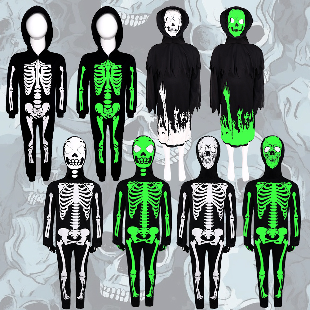 ハロウィン発光スカルスケルトンジャンプスーツホラー仮装コスプレ衣装ステージパフォーマンス衣装