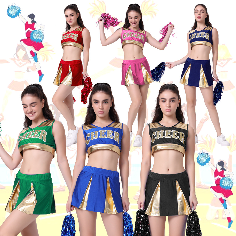 国境を越えたヨーロッパとアメリカのチアリーディングパフォーマンス衣装、大人用チアリーディングスカートスーツ、グループダンスエアロビクスパフォーマンス衣装