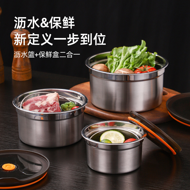 304ステンレス製鮮度保持ボックス、水切り野菜・果物用バスケット、屋外用蓋付き密閉冷凍ボックス、鮮度保持・密封