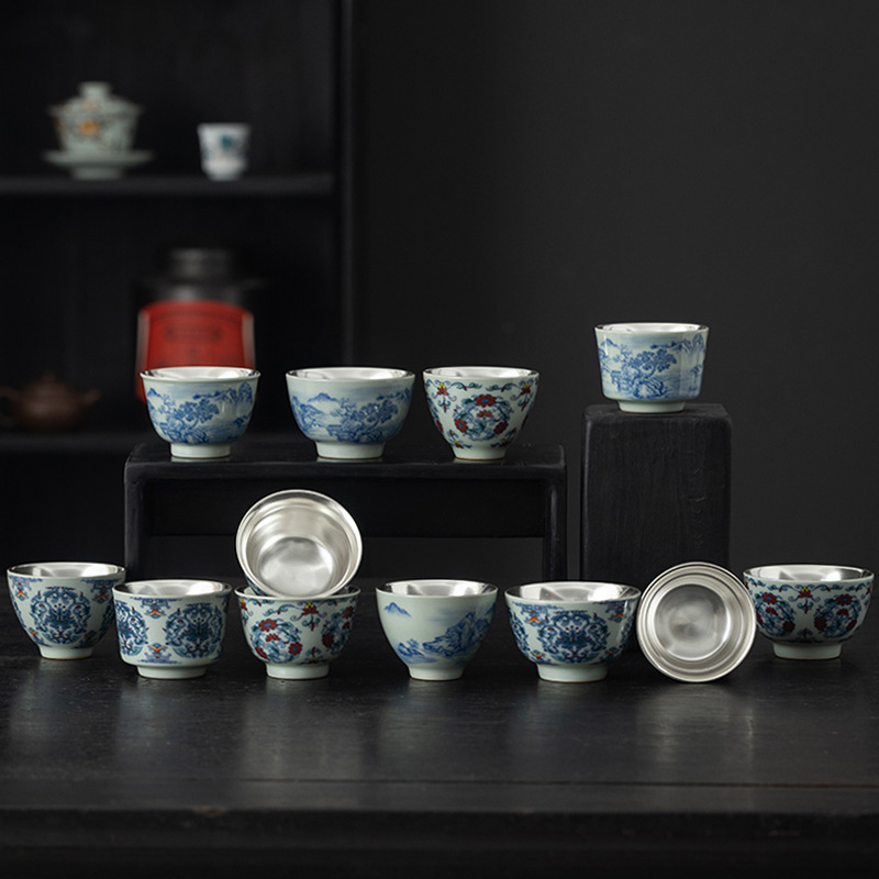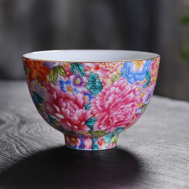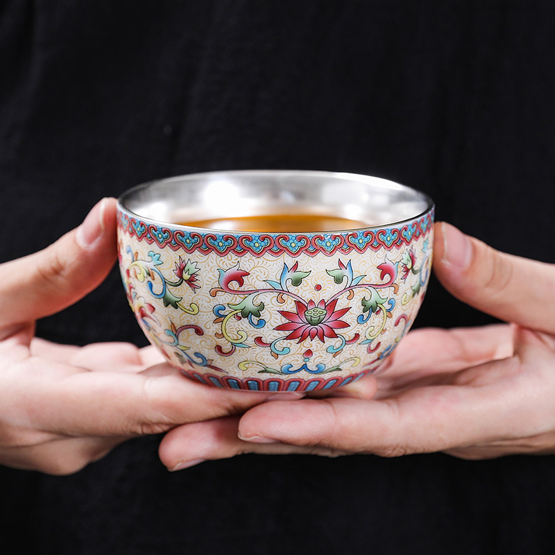 銀エナメルカラー主人杯陶磁器単杯品茗杯茶碗家庭用工夫茶杯レトロ金糸絞めカップ