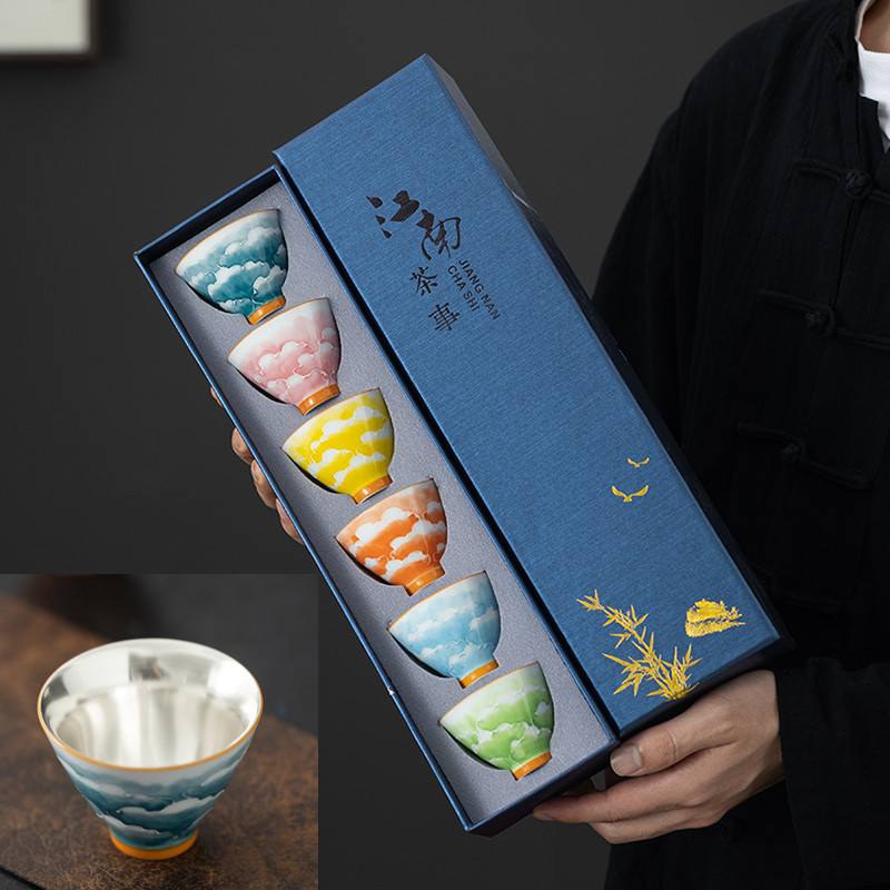 手描きのティーカップのギフトボックスのセットの陶磁器の中国式のお茶の杯の濃い銀の主人の杯の1杯の銀のコップのビジネスのお土産