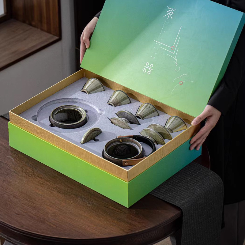 瑠璃茶器セット家庭用工夫千里江山凍結焼ティーポット玉磁器三才蓋碗礼箱卸売り