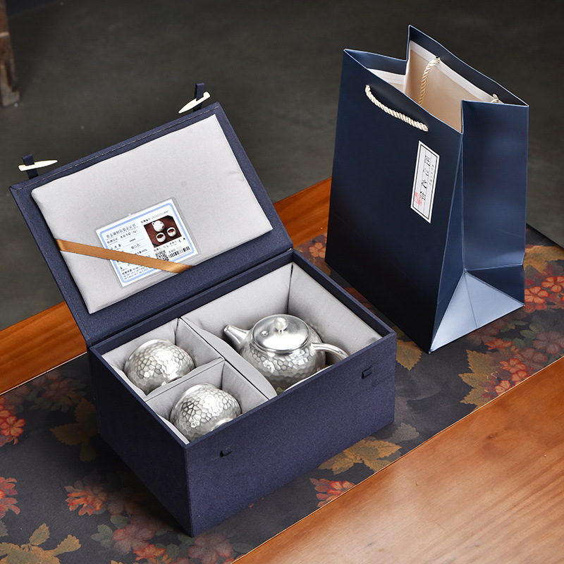 999銀茶器セット薪焼き防止手描き純銀セット茶器ギフトボックス家庭用贈答会ギフトボックス