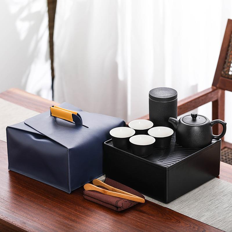 粗陶旅行工夫茶器セット陶磁器一壺四杯茶盤茶葉缶携帯型ビジネスお土産