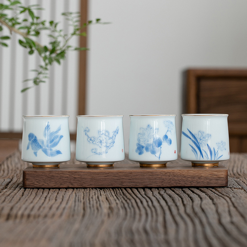 中秋の贈り物の徳化の純度の銀の単杯の手描きの主人の杯の四君子の個人の杯の新しい中国式の大きいサイズのお茶の杯