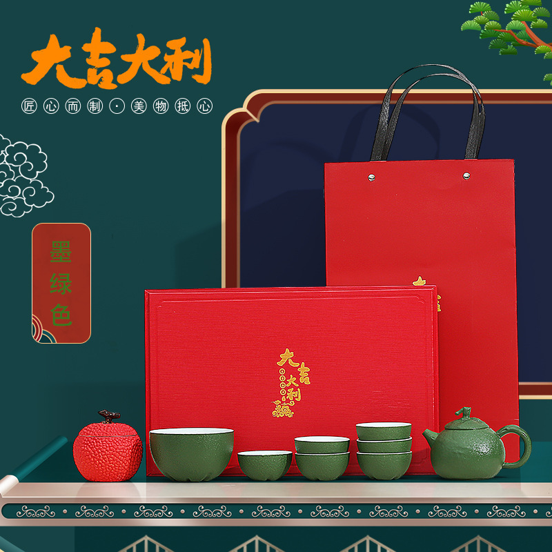 大吉イタリアカンフー茶器ティーカップティーポット陶磁器セット中国式家庭用シンプルな携帯型カップギフトボックス
