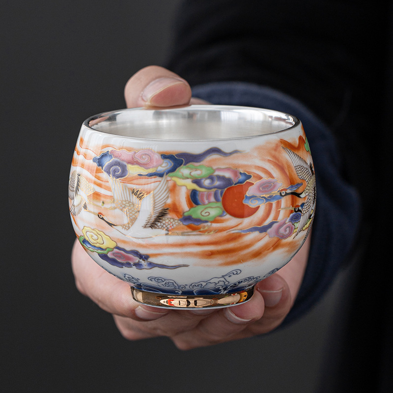 国潮仙鶴銀主人杯カンフー茶器大サイズ茶杯