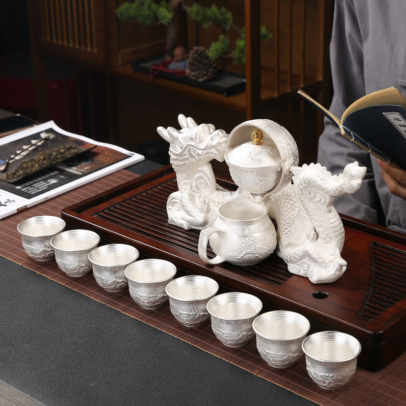 純銀茶器セット祥龍自動茶器手作りの銀ティーポット高級事務足銀茶器お土産