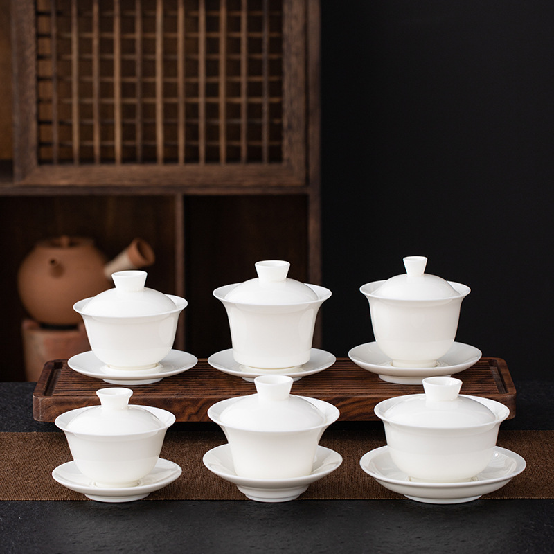 徳化白磁三才蓋碗羊脂玉磁器工夫茶器敬茶碗陶磁器茶杯お茶碗はロゴを印刷できます。