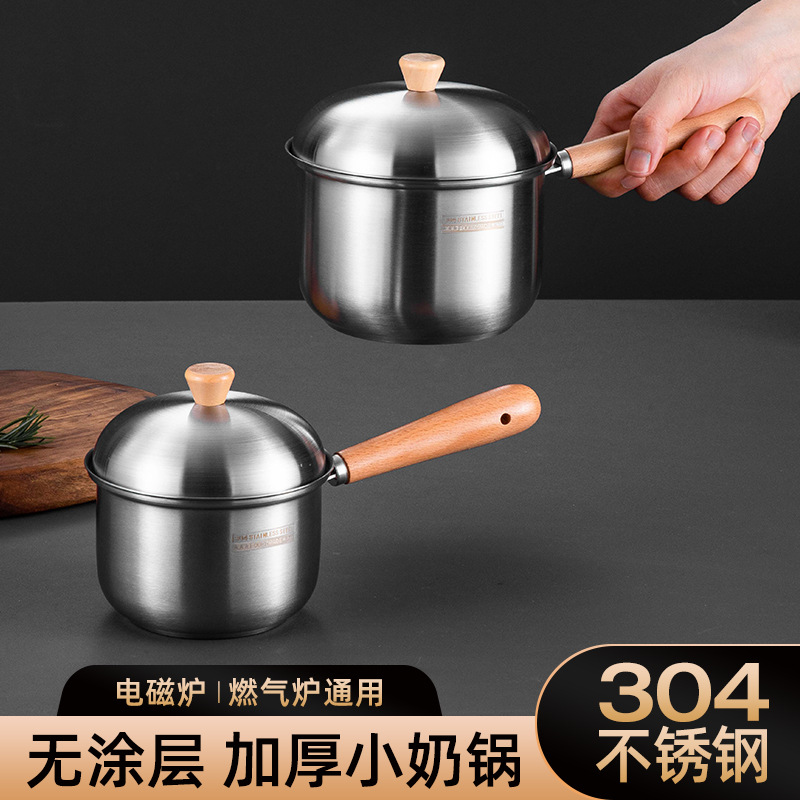 卸売り304ステンレスミルク鍋カップラーメン鍋家庭用木柄寮小スープ鍋牛乳加熱赤ちゃん補助鍋