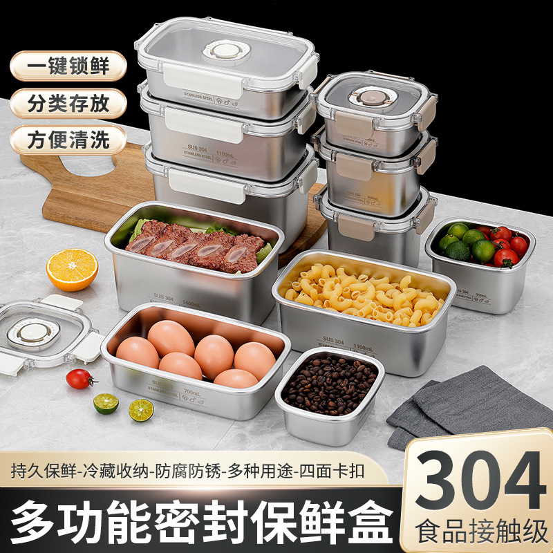 日本式304食品級鮮度保持ケースステンレス密封冷蔵庫収納ケース春遊果物弁当家庭用弁当箱