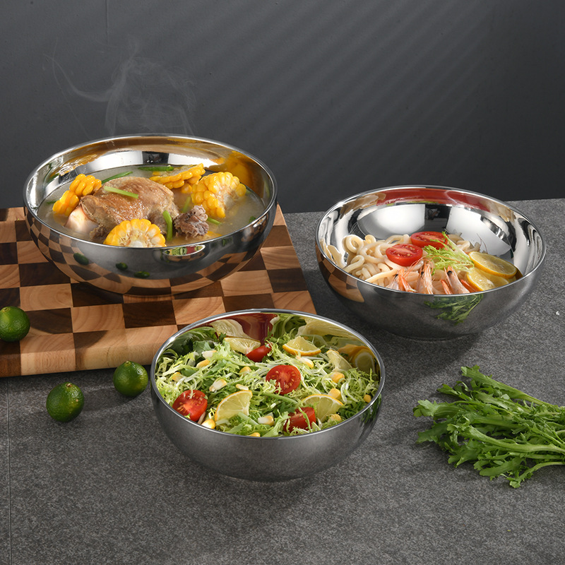 304ステンレスの二重碗の韓国式冷麺碗のサラダ碗の泡の碗の泡の碗はご飯の碗を混ぜます。