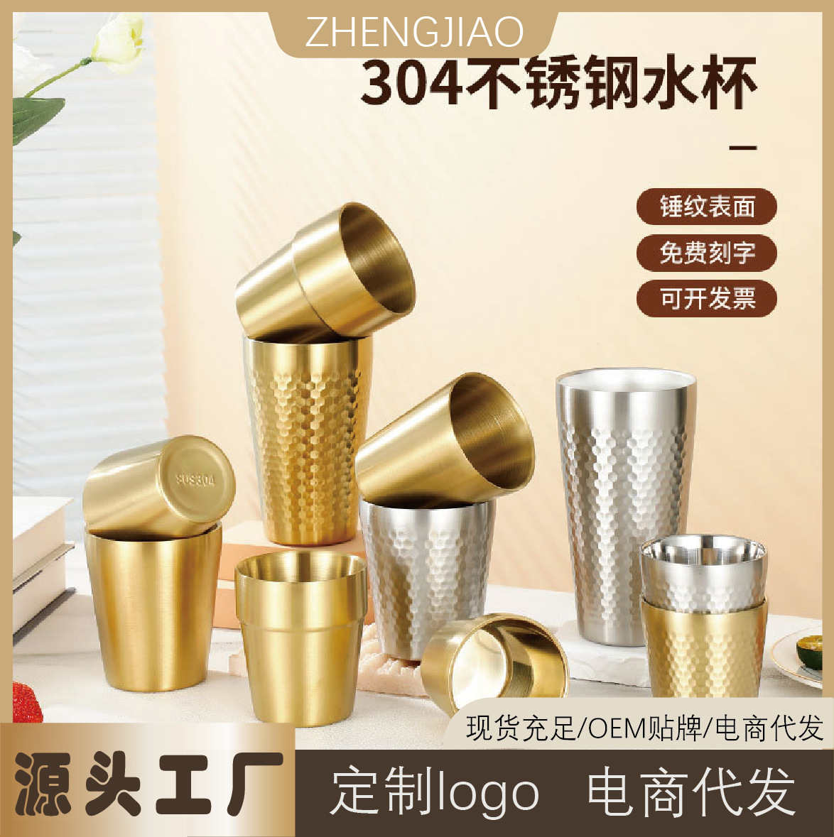 304ステンレス二重カップ蜂の巣ビールグラスハンマー紋二重カップカップ大容量コーヒーカップ彫刻