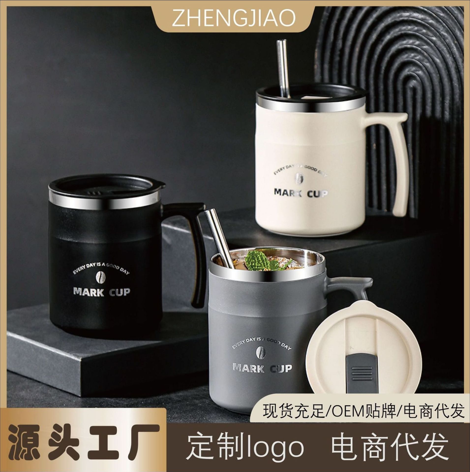 国境を越えたコップ304ステンレス蓋付き二重マグカップシンプルins風ヨーロッパ風高颜値牛乳コーヒーカップ