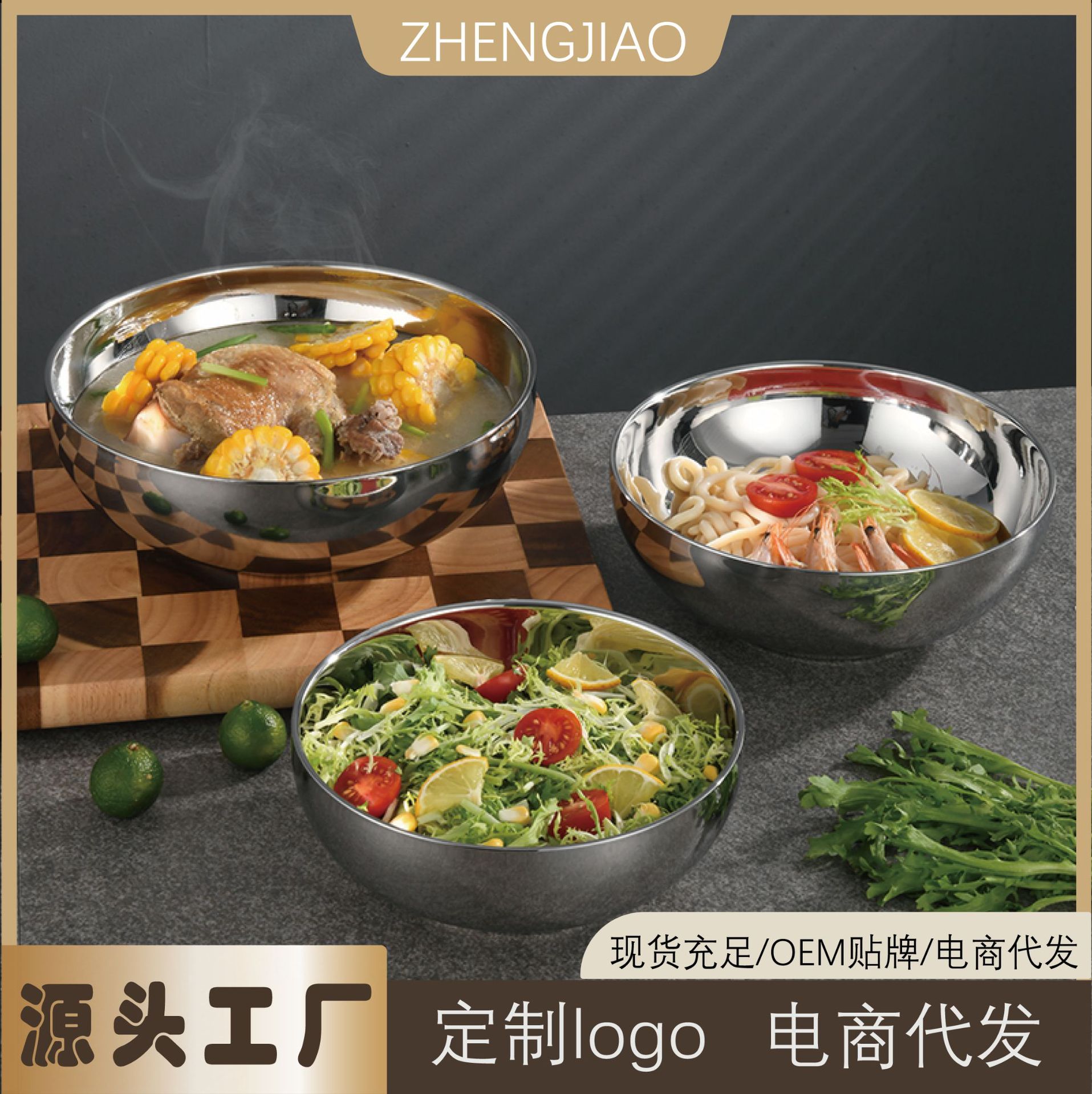 304ステンレス二重断熱ボウルは、家庭用サラダボウルの冷麺ボウルの食品級ロゴを厚くするのを防ぐ