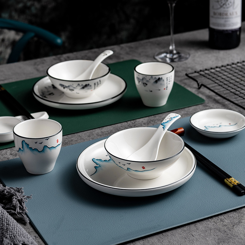 新中国風影青釉陶磁器碗家庭用業務用ご飯碗粥スープ碗ホテル食事バー会食器