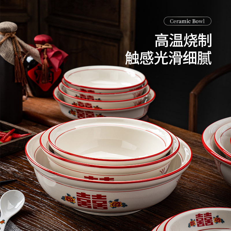 陶磁器の中国式のテーブルの食器の双喜のレトロなレストランのテーブルの食器の火鍋の店の湘菜館の位の碗の骨の皿