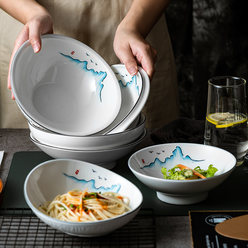 新しい陶磁器の手描きの異形の碗のホテルのレストランの牛肉のサラダの冷たい熱い料理の碗のクラブハウスの料理屋のスープの碗